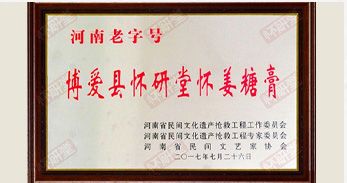 • 經(jīng)河南省民間文化遺產(chǎn)搶救工程專(zhuān)家委員會(huì)評(píng)審,認(rèn)定博愛(ài)縣“懷研堂懷姜糖膏”為“河南老字號(hào)”