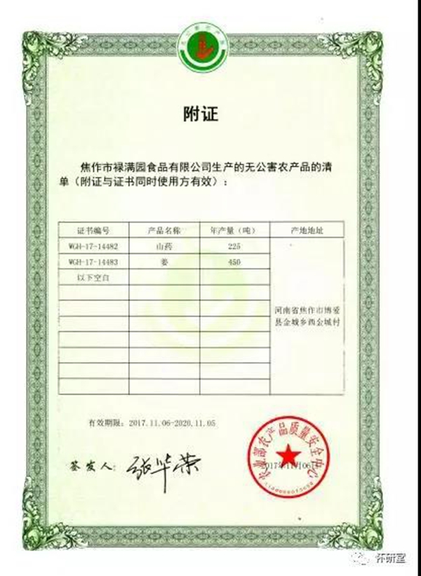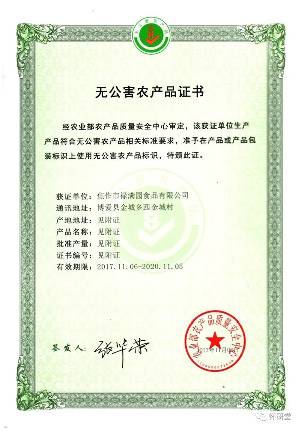 無(wú)公害認(rèn)證種植基地