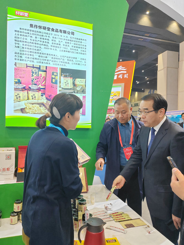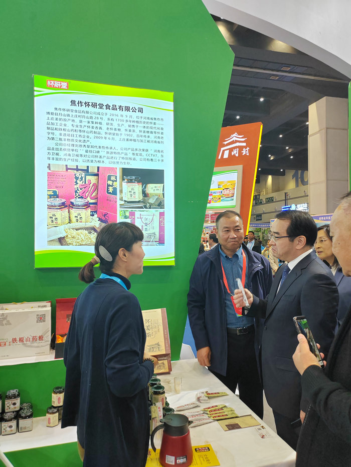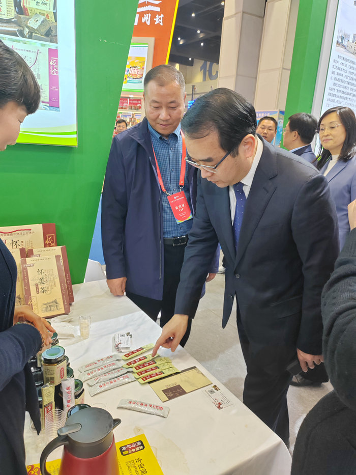 【第二屆“一帶一路”(河南)國際農業(yè)合作博覽會】于11月21日~23日在鄭州國際會展中心舉行,20多個國家的政府官員、駐華使節(jié)將參展參會。省農業(yè)廳孫廳長、市農業(yè)局張局長等領導蒞臨懷研堂展臺,感謝領導對懷姜文化和產品的支持和鼓勵。懷研堂懷姜茶系列喜獲一帶一路國際農業(yè)博覽會金獎,感謝省農業(yè)廳、市農業(yè)局支持感謝博覽會組委會的認可!